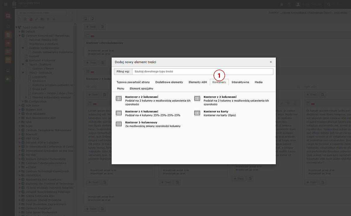 Do dyspozycji redaktorów są poniższe warianty kontenerów w zależności od oferowanej liczby kolumn: