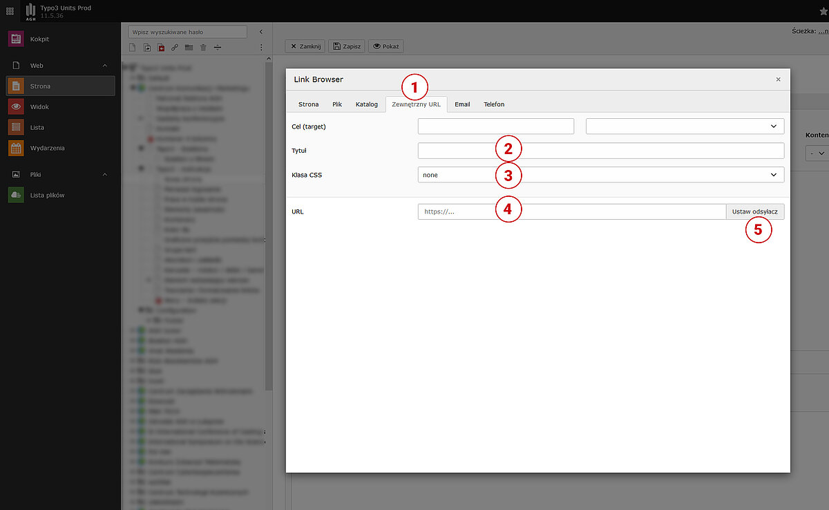 Jednymi z podstawowych elementów stron internetowych są linki – tekstowe hiperłącza (odnośniki do innej podstrony serwisu, innego serwisu, pliku, adresu e-mail...). Uczelniany szablon oferuje kilka stylów graficznego prezentowania hiperłączy. W zależności od lokalizacji linku wśród innych elementów strony i potrzeby jego wyeksponowania redaktor może w prosty sposób wpłynąć na wygląd tekstu będącego linkiem.
